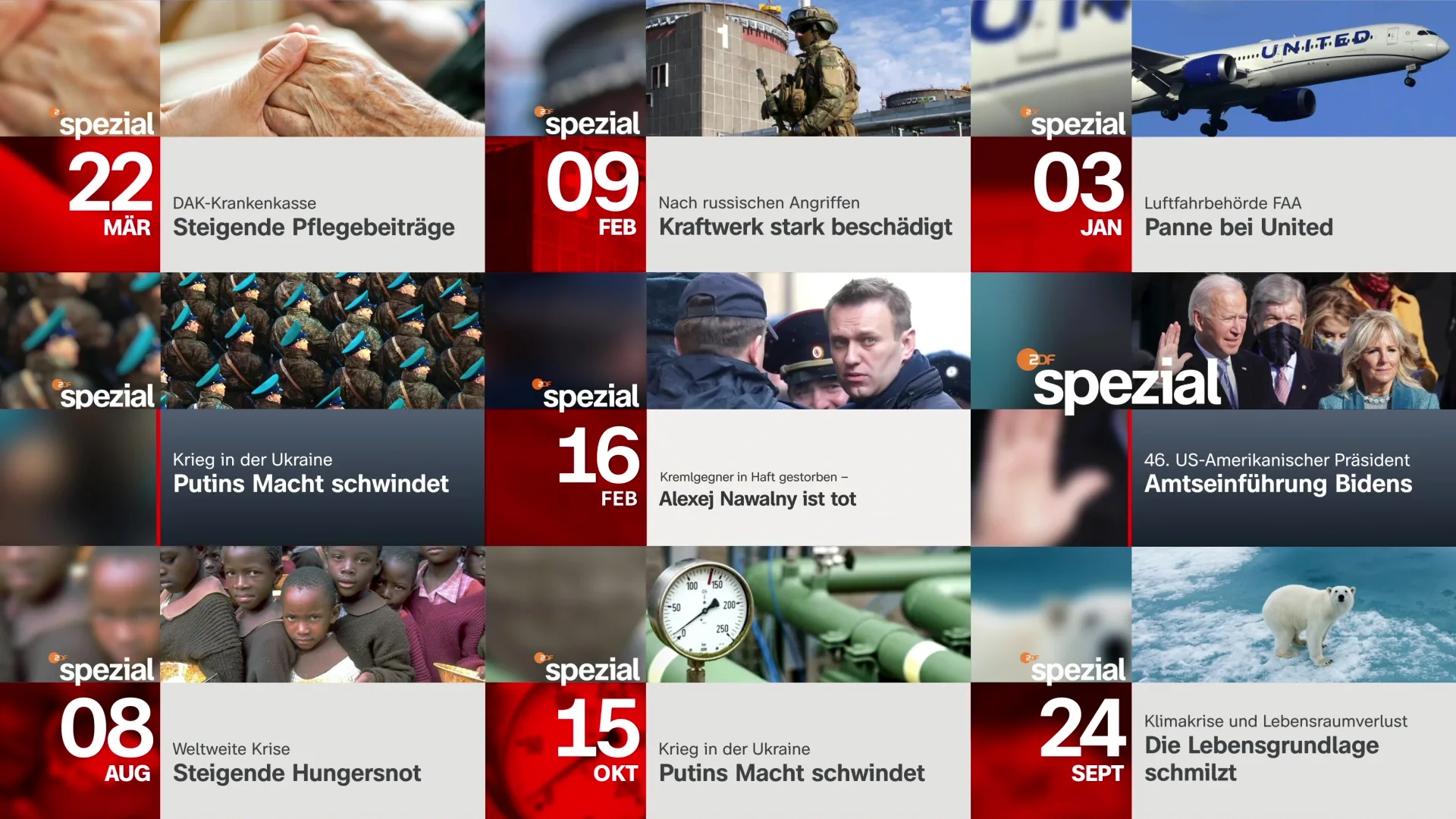 The shows are spontaneously produced and broadcast live for special events. The extraordinary events are put into context by ZDF's journalistic network.